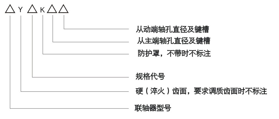 YLAY18K-170BX190表示規格是YLA型,硬齒面帶防護罩,主動端軸孔直徑為Φ170mm .120°雙鍵,從動端軸孔直徑為Φ190mm的滾子鏈聯軸器。